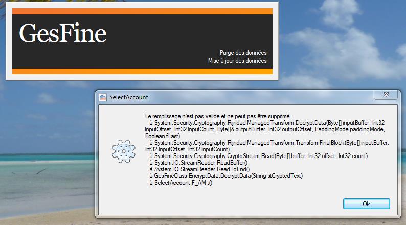 Lors de la fermeture de la fenètre de caractéristique d'un compte,ce message d'erreur est apparu et je ne visualise plus la liste des comptes. Ce message apparait également lors du démarrage de Gesfine.