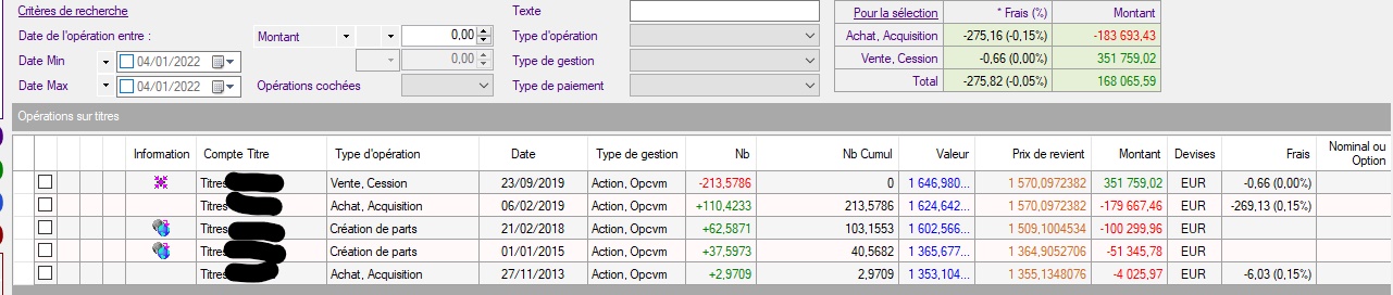 Réalisant un bon nombre d'operation d'achat/vente de titre par an , j'ai besoin d'analyser et d'editer par compte les nouveau tires et/ ou complement de titres fait dans l'année et/ou ...