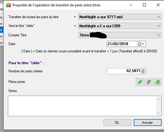 Re: [Opérations sur titres] Transfert des parts entre titres (Liquidation/Création)