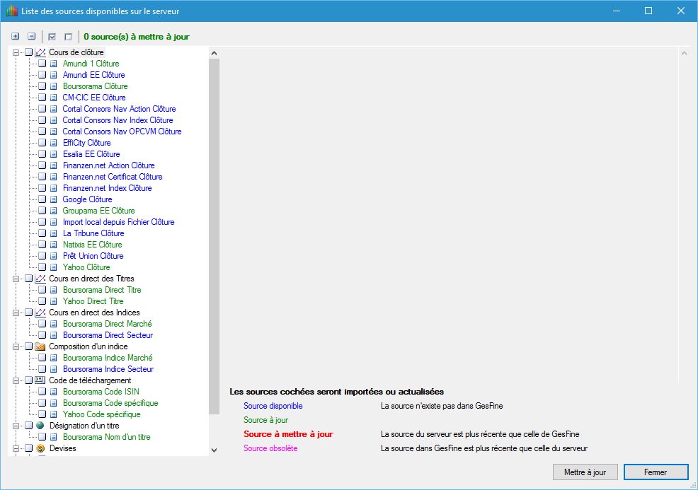 Il suffit ensuite de sélectionner les sources à mettre à jour et/ou disponibles et de les importer en cliquant sur "Mettre à jour"