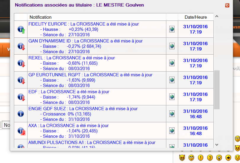 Pour cette capture les cours sont mis à jour au 27/10/2016
