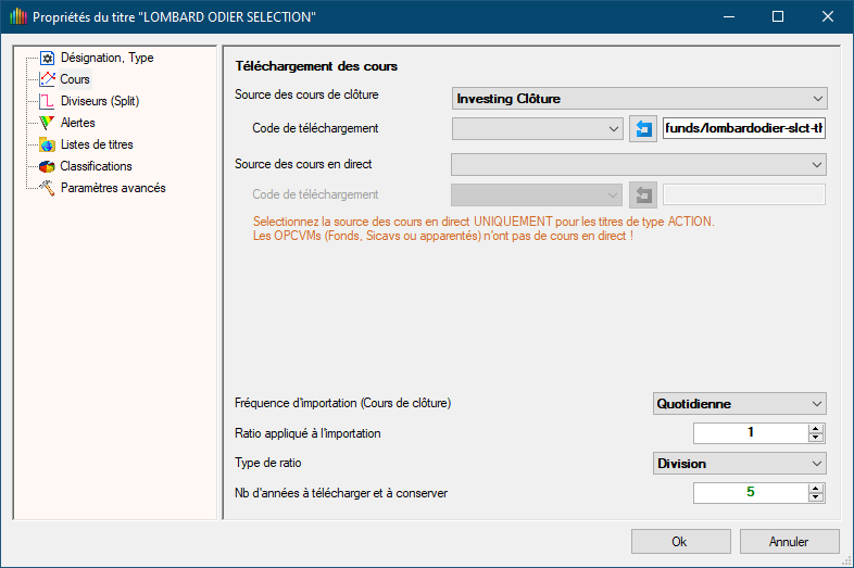 Je téléchargeais les cours sur Morningstar.es 1 clôture,