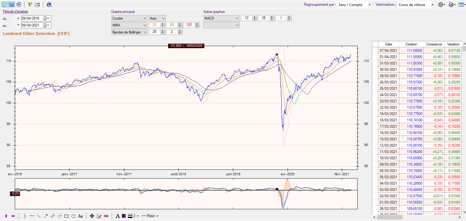 Pour ce fonds LU0470793497 LO Selection - Conservative (CHF) P A tu vas utiliser la source «Investing Clôture»
