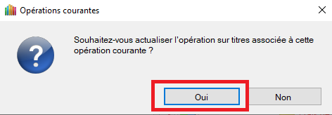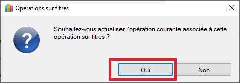 - Valider l'opération et valider l'actualisation de l'opération sur titre