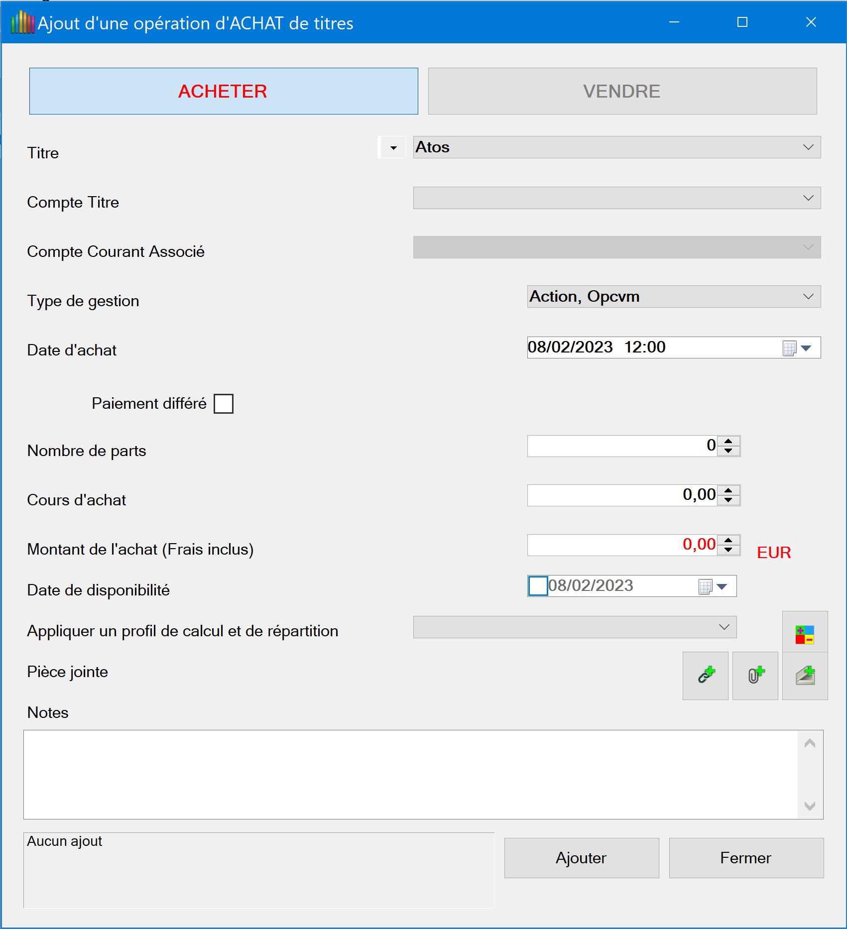 Peux-tu aussi me faire une capture d'écran du formulaire de création d'une opération d'achat de titres, j'ai un doute pour l'affichage sur ta configuration ?