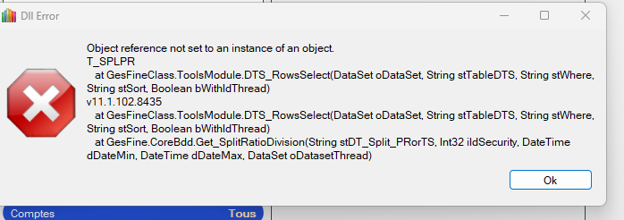 Bonjour, à l'ouverture de Gesfine ce matin j'ai un souci. Impossible de sortir ou d'arrêter Gesfine.