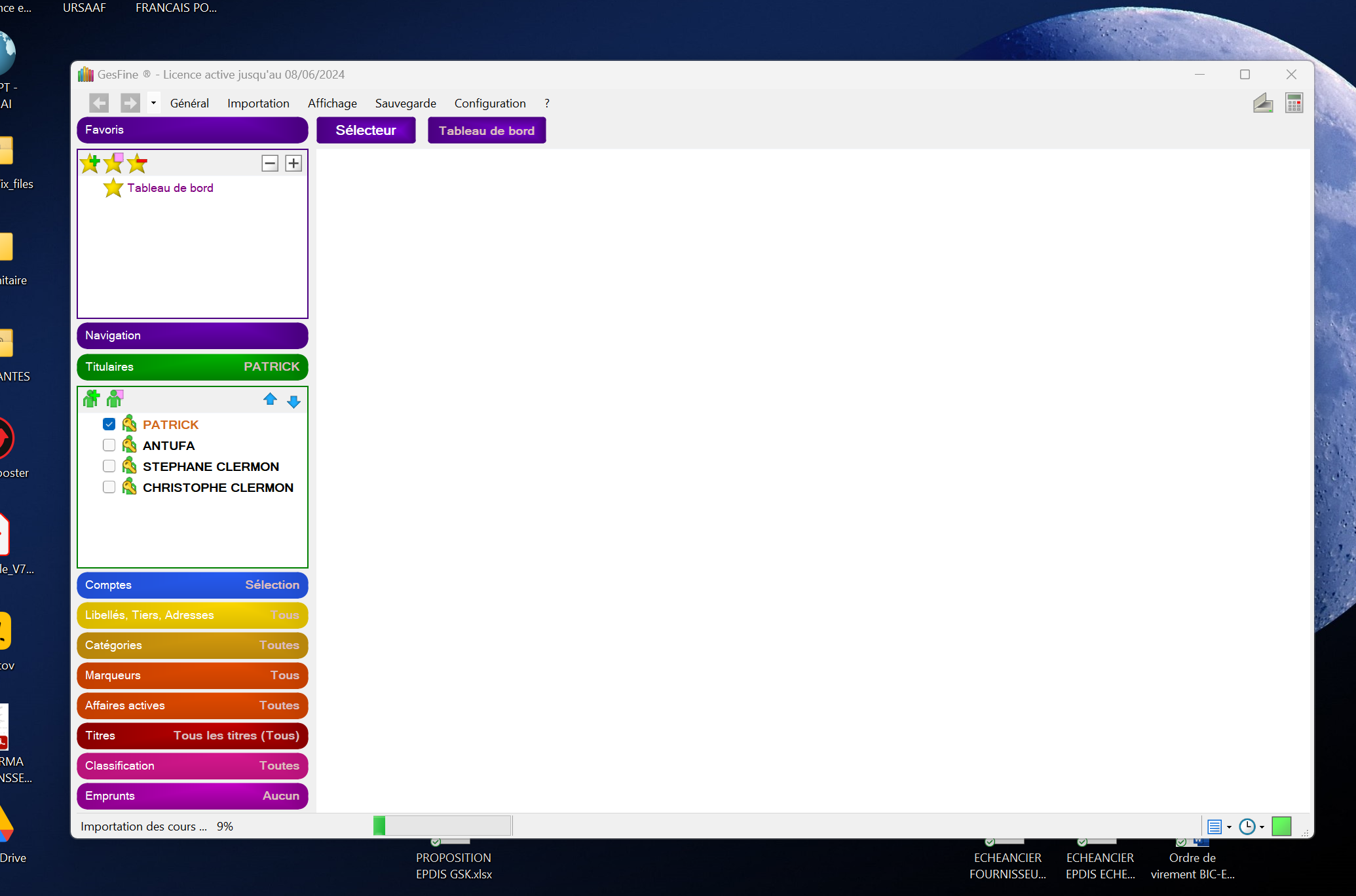Ensuite l'importation des cours en direct se déroule normalement avec un tableau de bord toujours affiché