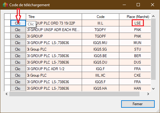 J'ai une première question sur l'importation des cours et le paramétrage des indices : j'ai réussi à paramétrer quelques indices (CAC 40 , SBF120, ...), mais les actions composant ces indices n'ont pas toujours les codes permettant le téléchargement (isin ou autres) :