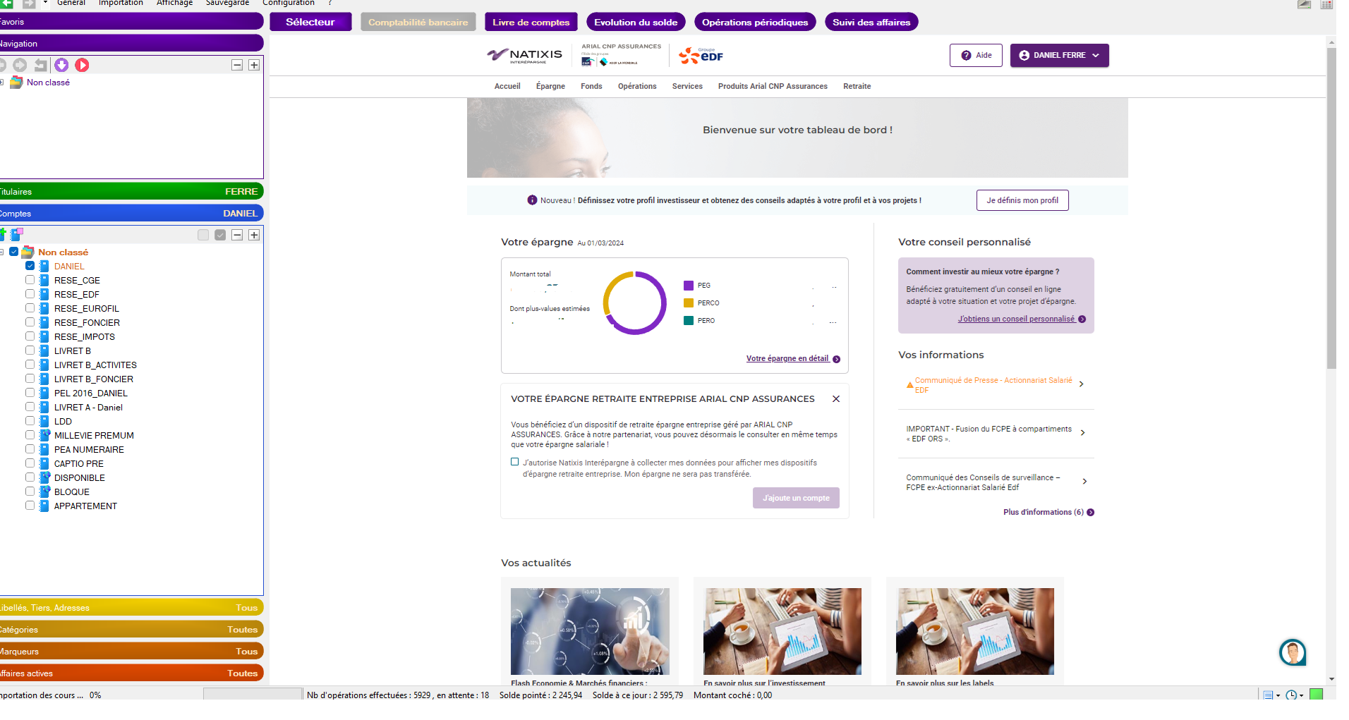 Tu utilises bien pour tous tes titres la source "Natixis EE cs Clôture", et donc tu te connectes avec notamment un code serveur et tu as plusieurs plans ?