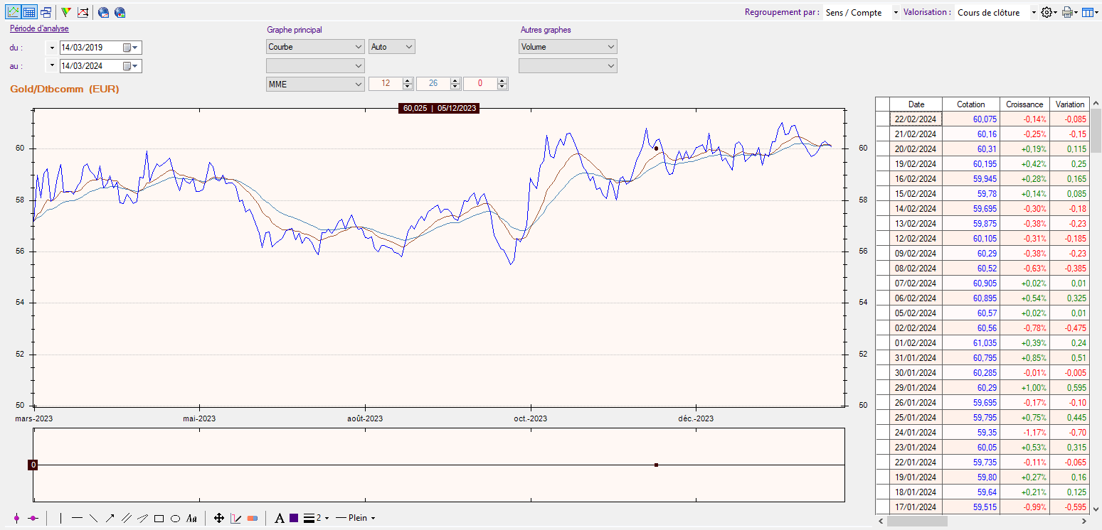 Après, tu peux tout simplement importer les cours avec la source "Boursorama Code Clôture" et le code de téléchargement 1z4GLD