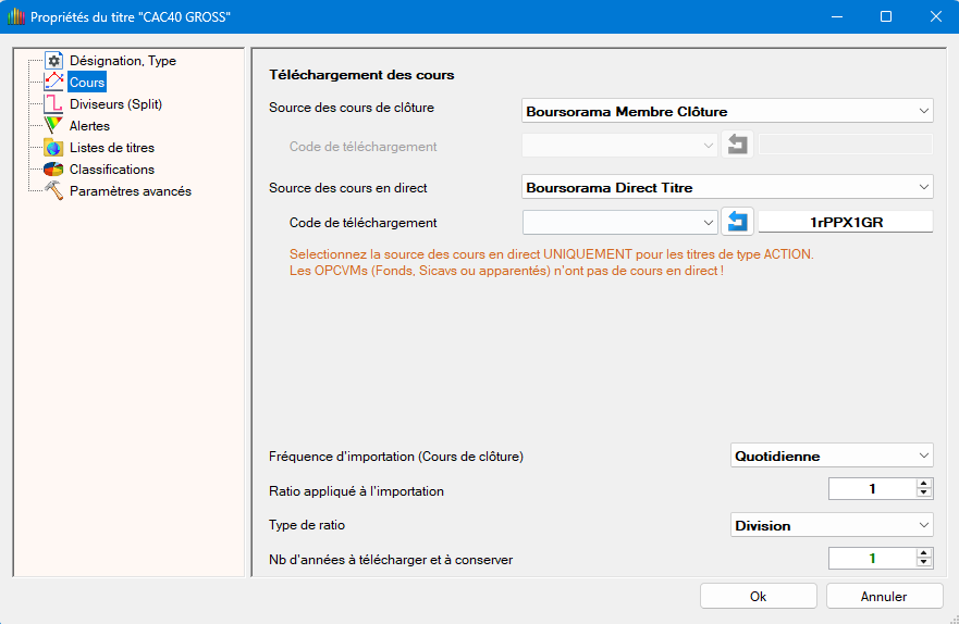 J'ai essayé à plusieurs reprises, avec des sources différentes (Boursorama, Yahoo, Investing), je n'arrive pas à télécharger les cours (clôture et direct) de l'indice CAC 40 Gross Tr.