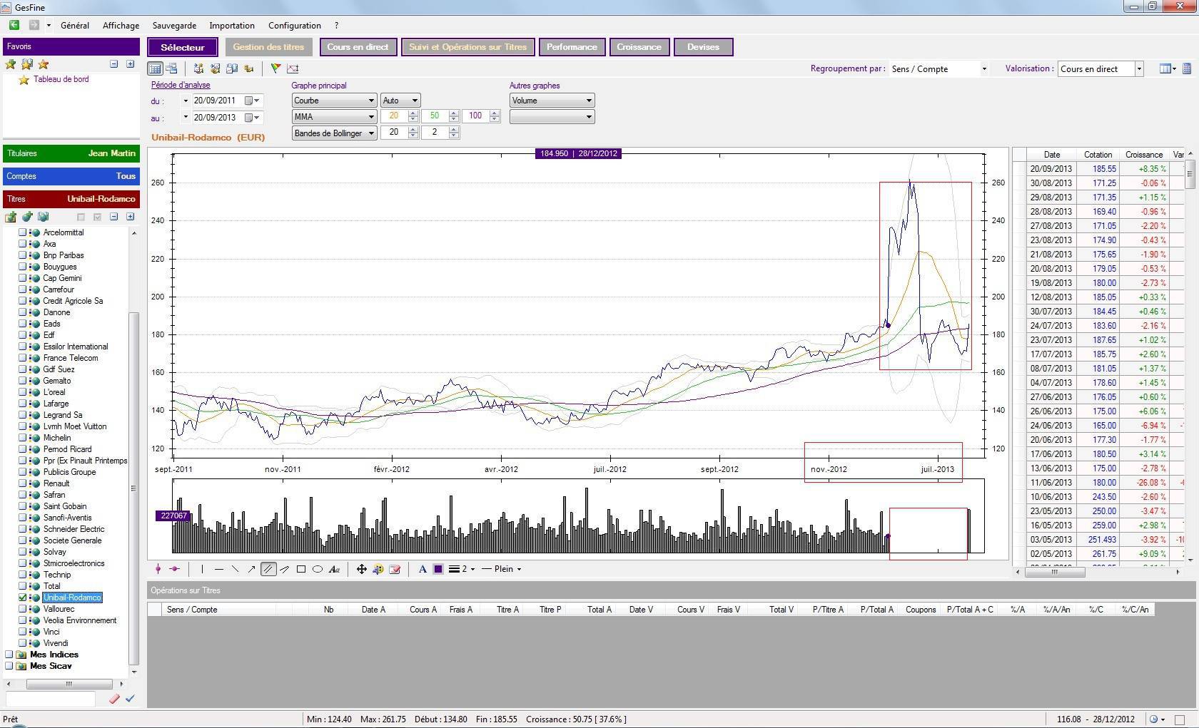 Bref, j'ai quand même découvert lors de l'affichage graphique des cours des actions qu'il y avait un problème sur les valeurs Gemalto et Unibail.