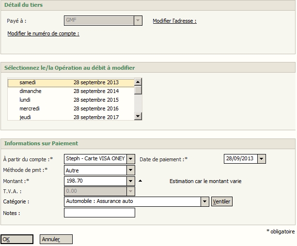 Dans Money, il était possible de définir les montants des mensualités pour chacune des périodes. Apparemment ce n'est pas possible actuellement. C'est une fonctionnalité pas mal car ca permet d'entrer sa prévision et ne pas la redécouvrir lors du relevé de compte.