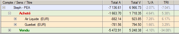 De l'autre j'ai le TRI de la partie soldée de mon portefeuille égal à -34.08%