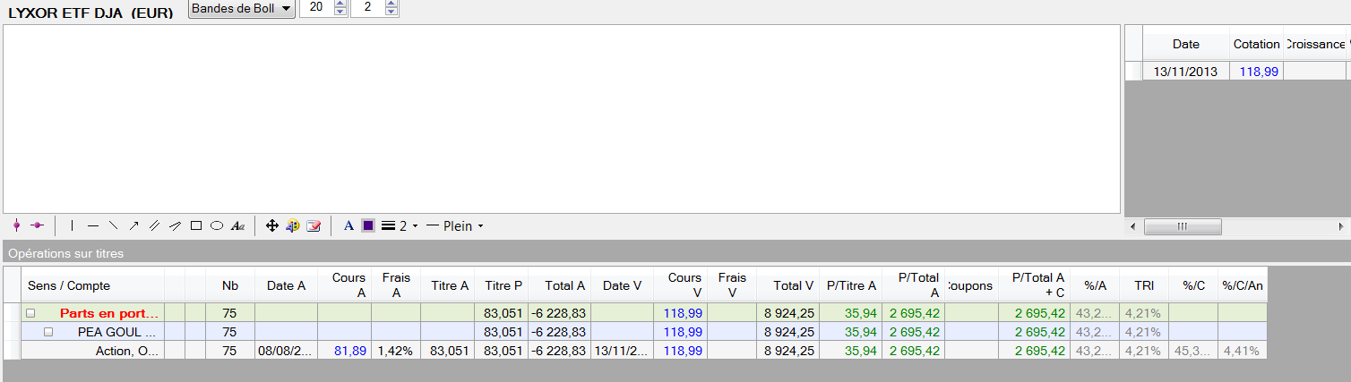Concernant les cours de clôture, tu n'as pas de cours soit car ton code d'importation n'est pas bon, soit parce que la source sélectionnée n'a pas de cours pour ce code. Il faut essayer éventuellement une autre source.