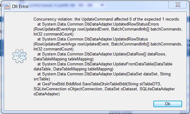Pendant que j'écris ce message sur mon poste apparition de la fenêtre Dll error, Gesfine figé, tâche tuée.