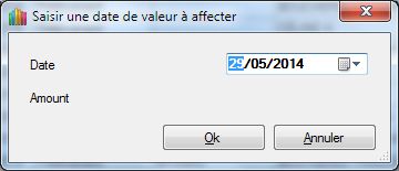 1 - Dans la boîte de dialogue "Saisir une date de valeur à affecter" il apparaît un TextBox "Amount" :