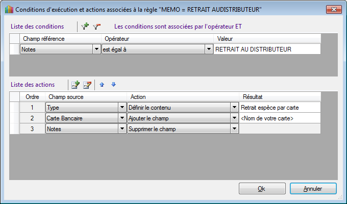 Règle : MEMO = RETRAIT AU DISTRIBUTEUR