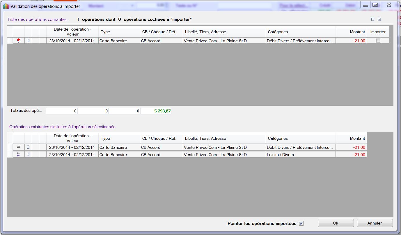 [Corrigé 5.9.59.5482] Importation d'opérations - Catégories/sous catégorie