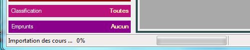 De temps en temps, au premier lancement de GesFine, l'importation des cours reste bloquée à 0%, les menus "Importation des cours" et "Actualisation des cours en direct" restent définitivement grisés sans que cela bloque l'utilisation des comptes de GesFine. Même en utilisant la "Réinitialisation des paramètres d'importation de la base de donnée" cela ne change rien.