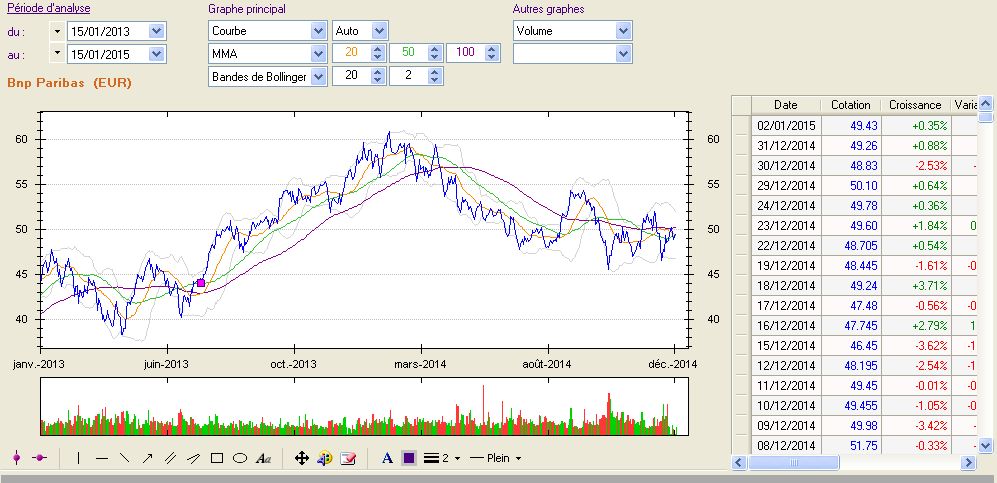 Après avoir fait une première vérification dans le module "analyse graphique" il s'avère que les cours sont figés au 02/0, alors que le module "valorisation des portefeuilles" donne de bonnes informations avec les cours chargés à la bonne date.