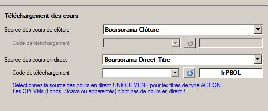 NON, il ne faut pas indiquer d'identifiant ni de mot de passe pour "Boursorama direct titres". Ils ne sont indispensables que pour "Boursorama clôture".bf a écrit :As-tu aussi paramétré "configuration", "gestion des sources de données", cours en direct des titres", "boursorama direct titres", puis identifiant mot de passe membre boursorama ?