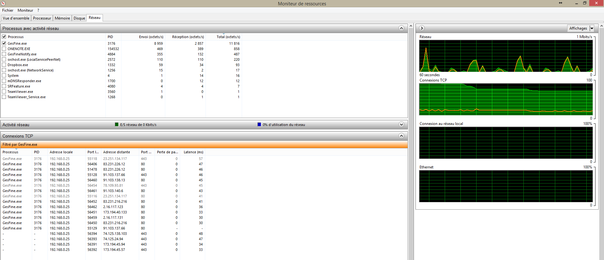 Je me rends compte que le tableau que j'avais obtenu avec 'resmon' sous Win 8 n’était pas passé, je le passe donc maintenant.