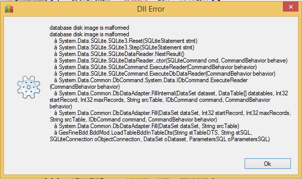 Il faut donc que tu repartes avec une nouvelle base (relancer l'installation depuis le menu configuration pour créer un nouveau fichier GesData.db) puis restaurer tes données.