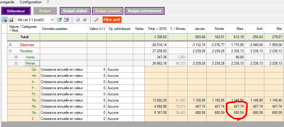 Gesfine "rajoute" quelques sous catégories sur le mois de mars (cerclées de rouge).