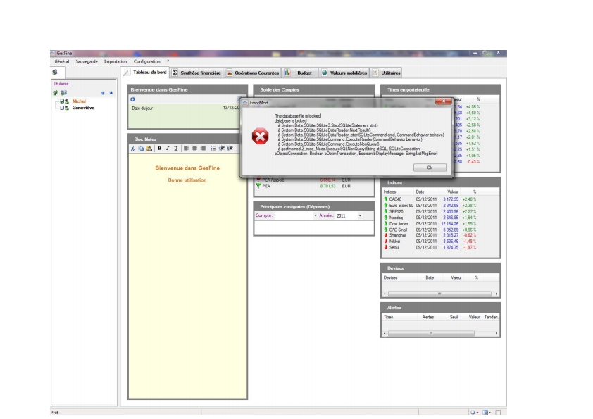 Re: [Démarrage] Avertissement Base de données verrouillée