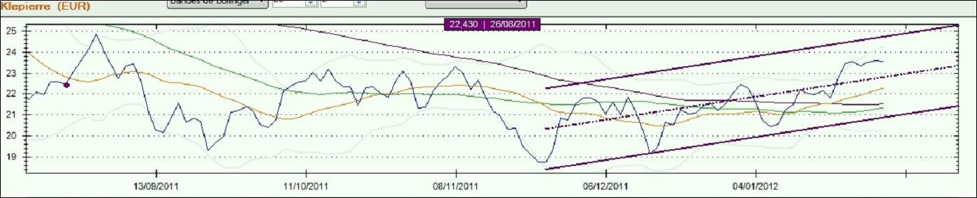 Les seules intersections "pertinentes" seraient plutôt les droites du canal avec la droite verticale "imaginaire" au niveau du dernier cours connu.