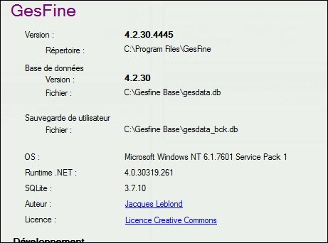 Tu ne vois pas ce répertoire dans le formulaire "A propos" mais dans les "options/préférences" de GesFine, item "Sauvegarde".