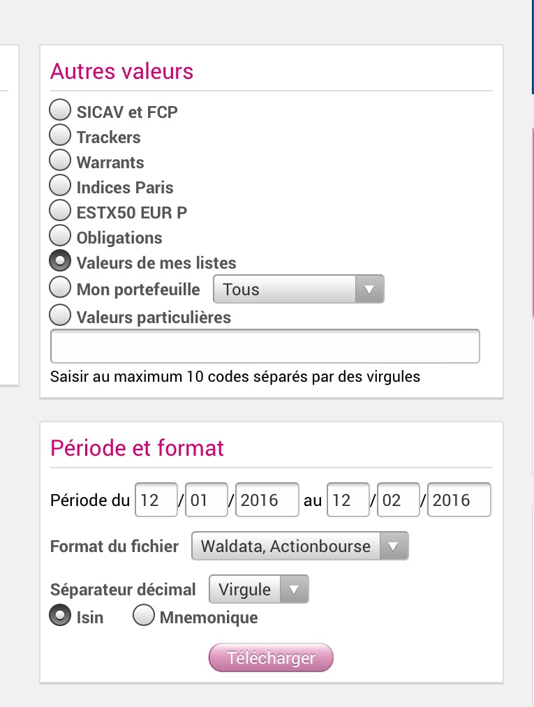 Par contre, sur les cours des fonds, boursorama ou les Echos, l'export ne peut se faire que sur une journée.