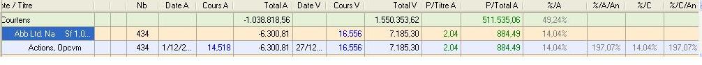 Par contre dans le module "Suivi et opérations sur titres", au moment de saisir l'opération, vous avez du renseigner la valeur du cours à la date d'achat donc au 1/12 (cette valeur est attaché à l'opération et n'existe pas forcément dans la table des cours du titre), voilà pourquoi les % peuvent différer.