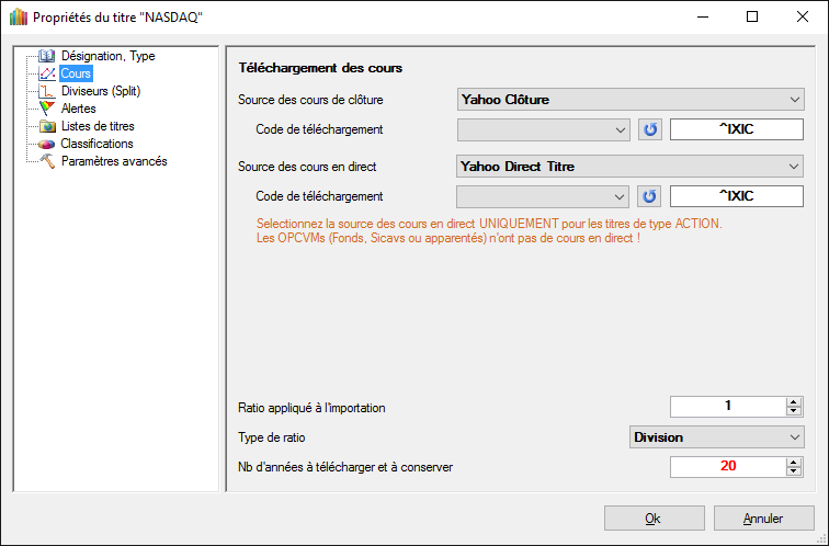 D'autre part je ne me souvient plus comment il faut faire pour récupérer l’historique des indices plus particulièrement celui du Nasdac je récupère bien celui du CAC40 mais je n'arrive pas a télécharger pour le Nasdac