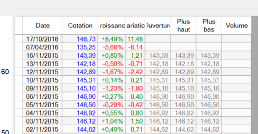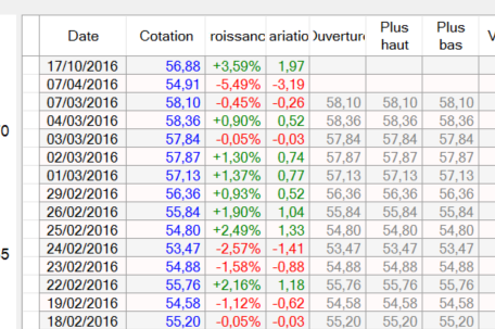 Pour cette capture les cours sont mis à jour au 27/10/2016