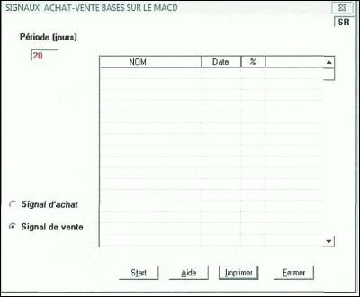 Cette fenêtre permet de lister toutes les actions ayant eu un signal d'achat (ou de vente) sur les N derniers cours ce qui est vérifiable sur le graphe en précisant une moyenne mobile identique.