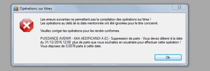 Comme l'indique le message tu essayes de soustraire toutes (ou plus) les parts que tu possèdes. C'est une opération interdite dans GesFine.