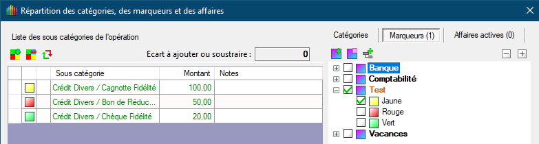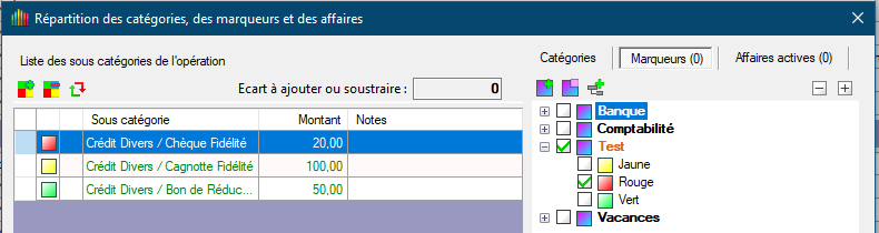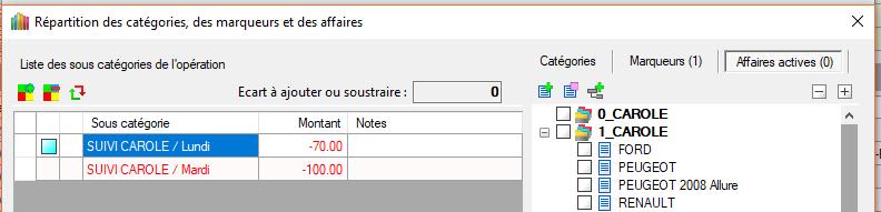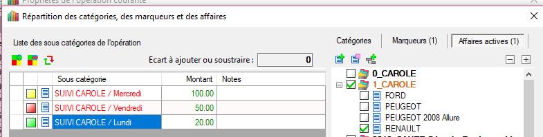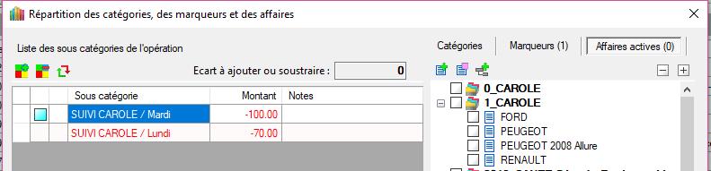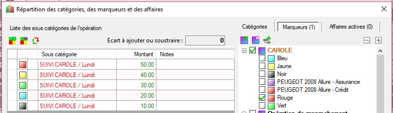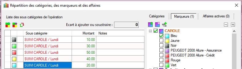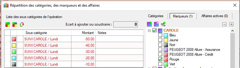 REMARQUE : En créant d'abord les catégories/sous-catégories, la dernière ligne possède le montant global de l'opération. Ensuite, on modifie les montants puis on affecte les marqueurs. Cela ne viendrait-il pas du premier montant initialisé ?