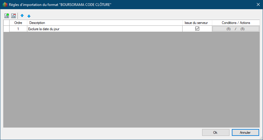 - Vous pouvez supprimer toutes les lignes “Exclure la date du jour” qui ne sont pas “issues du serveur” à partir de la ligne 2 en la sélectionnant et en cliquant sur le 2ème icône.