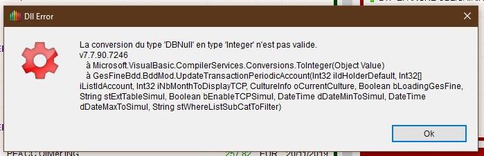 [Corrigé 7.7.90.7247] Opérations périodiques - Message d'erreur