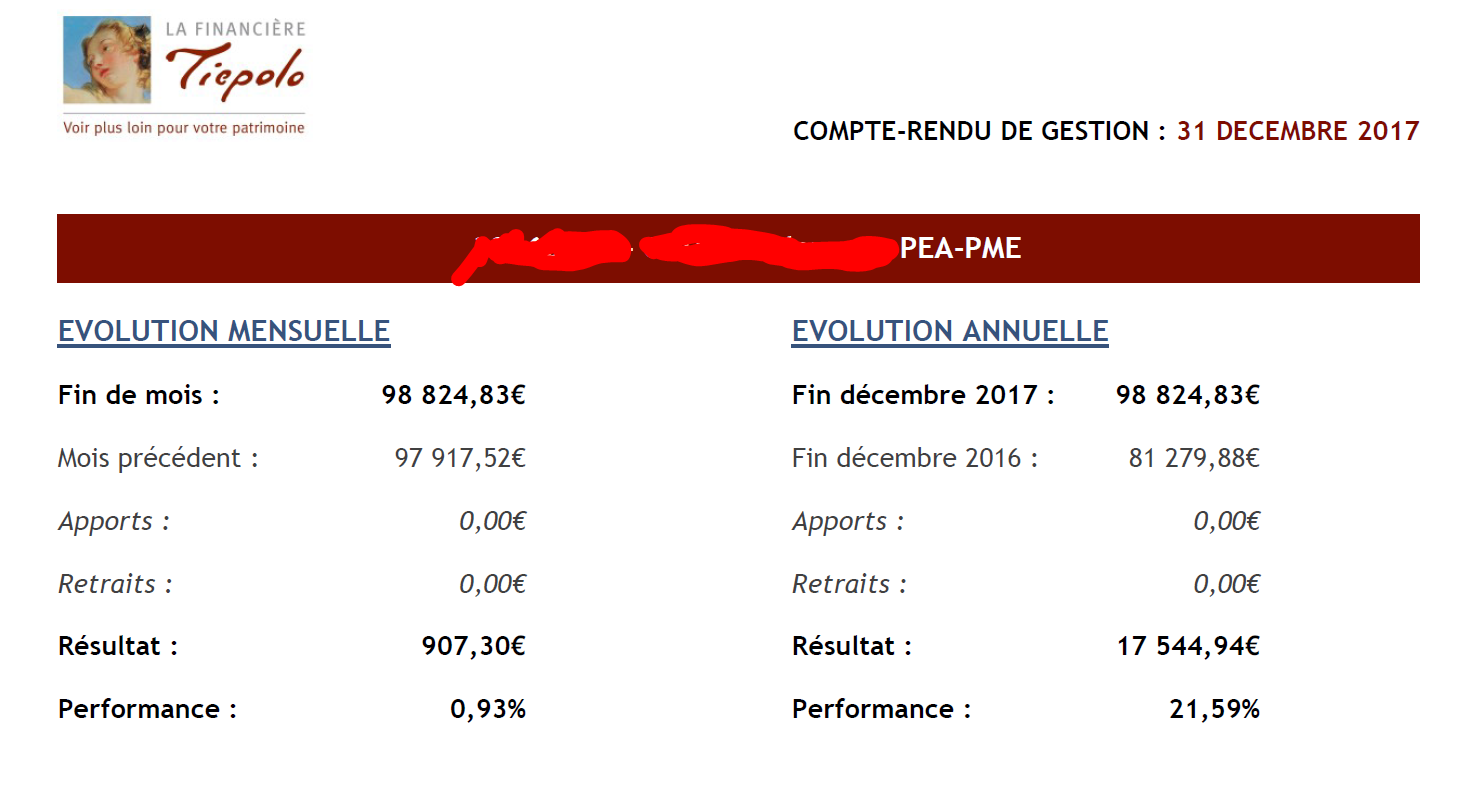 Bonjour, concernant la valorisation avec le cash. Tous les gestionnaires de portefeuille sérieux font leur reporting cash inclus. Voir fichier joint (les montants en début et fin de période comprennent les liquidités).