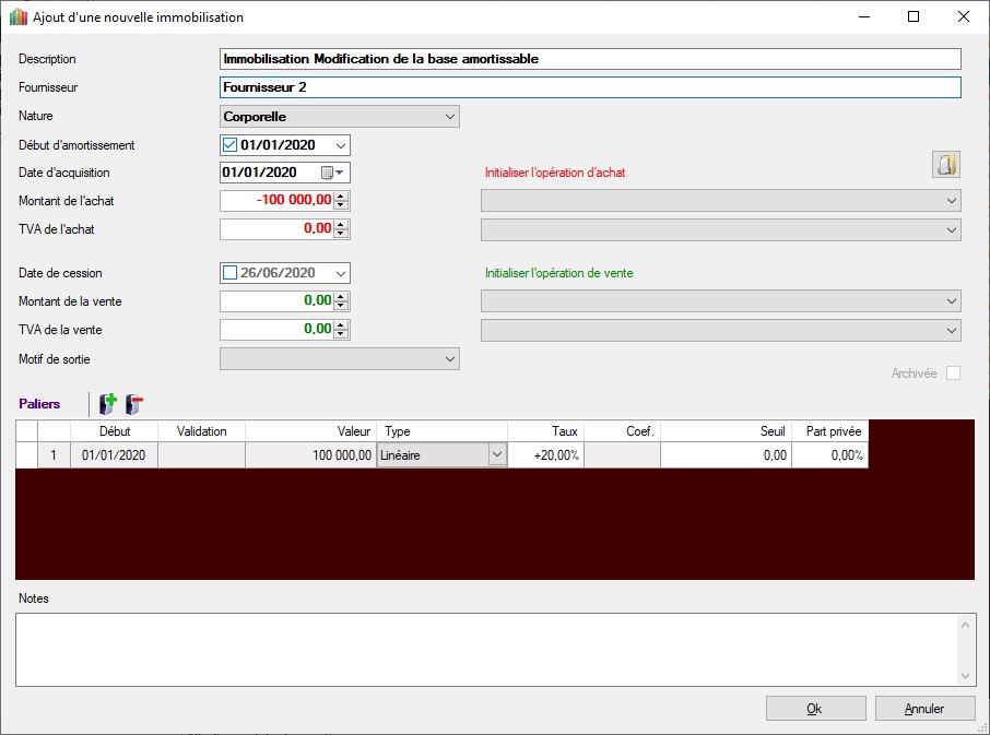 Création d'un deuxième palier avec :- Une valeur résiduelle au bout de 2 ans égale à 60 000€