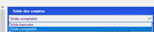 La liste déroulante se trouve dans le plugin "Solde des comptes" et juste sous le titre du même nom sur le tableau de bord à l'ouverture de GesFine.