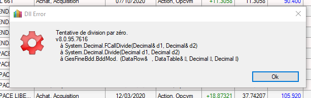 [Corrigé 8.1.96.7671] Opérations sur titres - Message d'erreur "Division par 0"