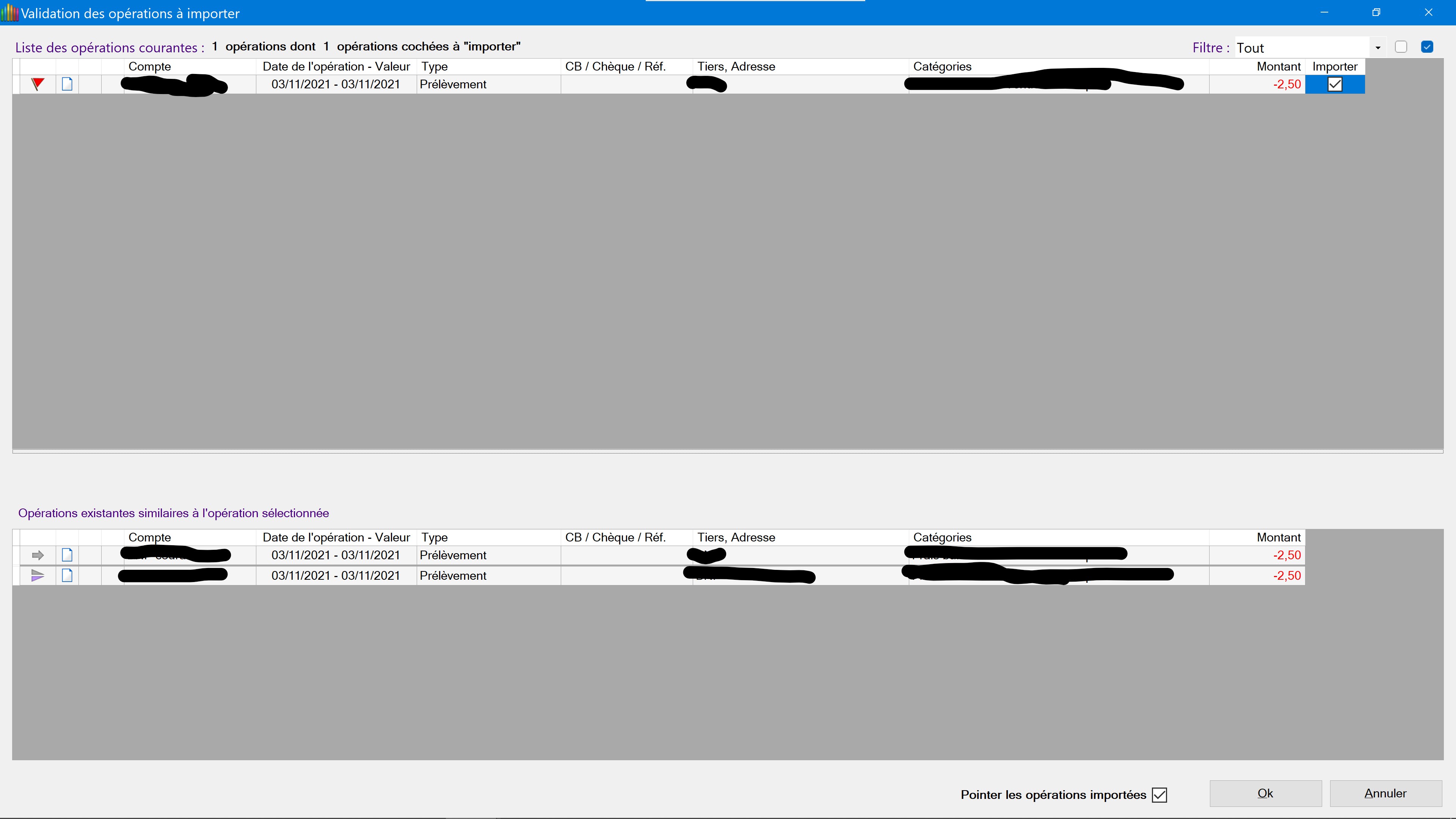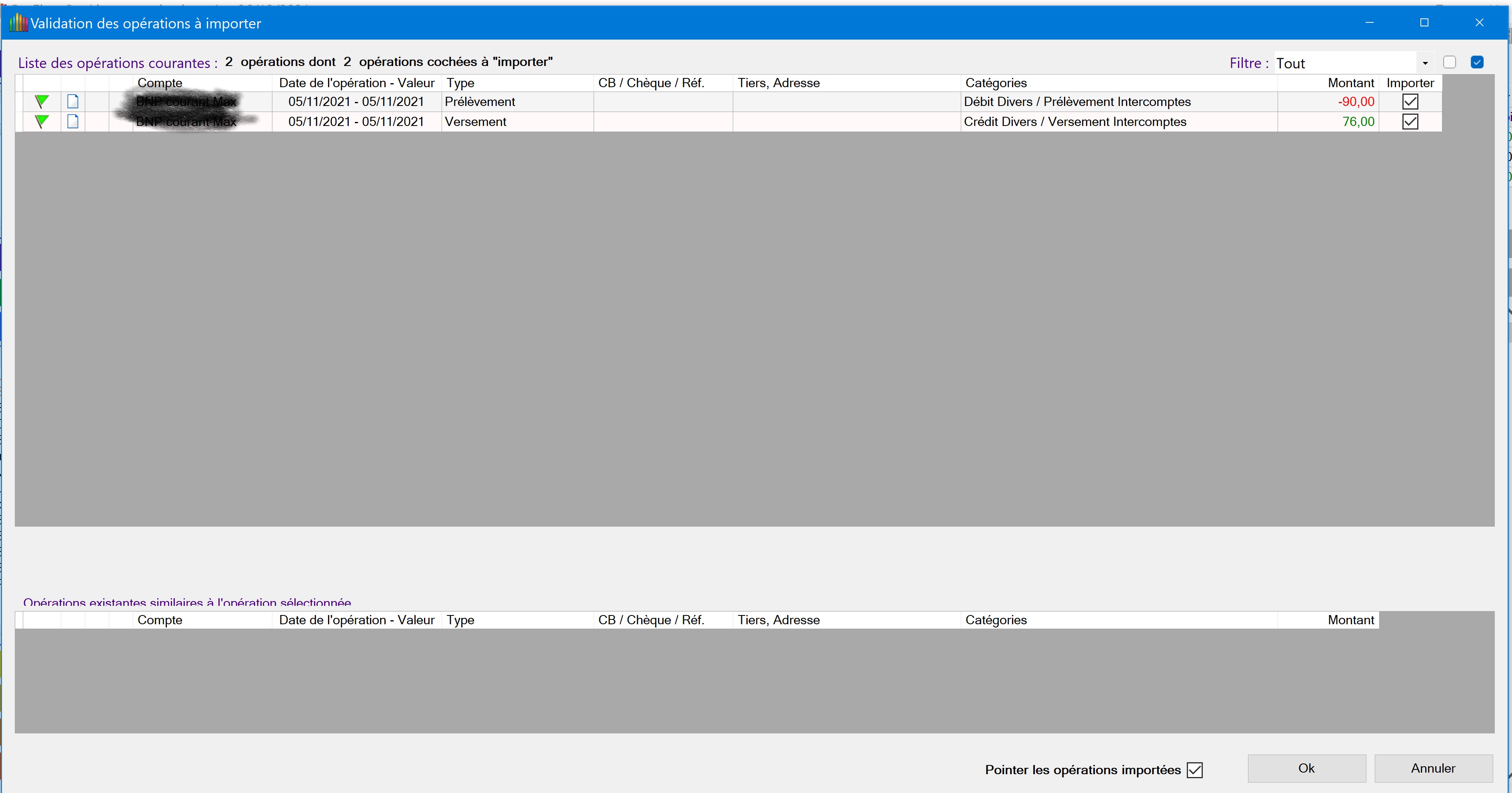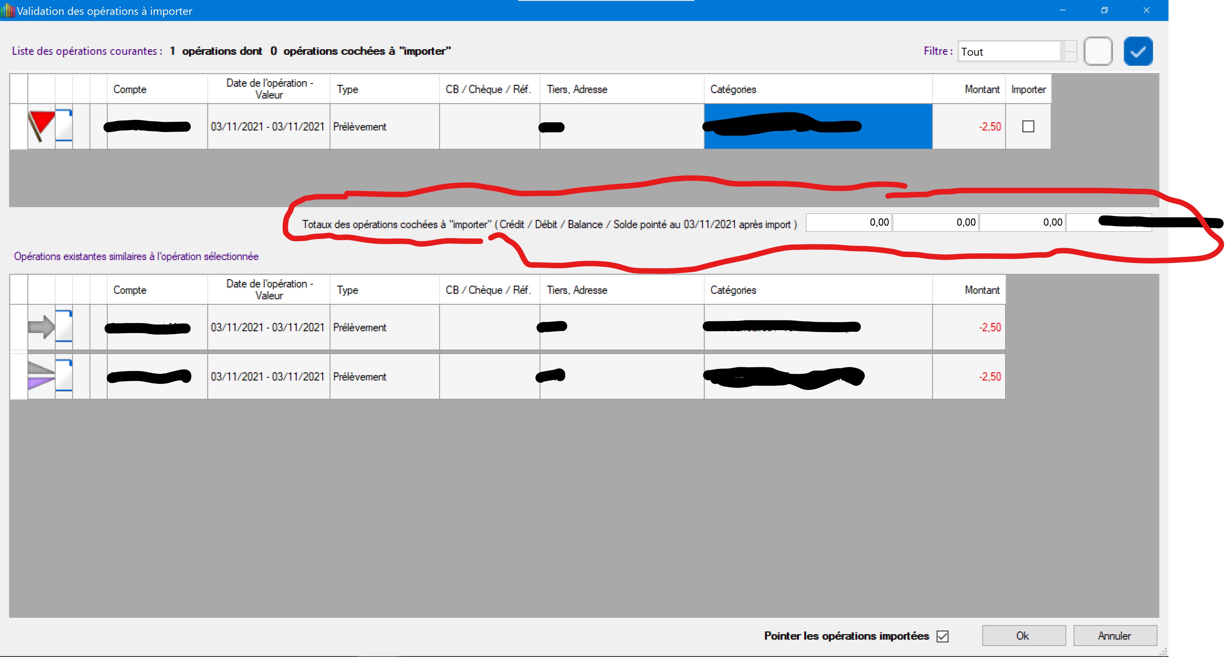 Un dernier défaut si je puis me permettre concerne le formulaire de la validation des opérations courantes à importer à partir d'un fichier ; en effet on a perdu la ligne affichant les :