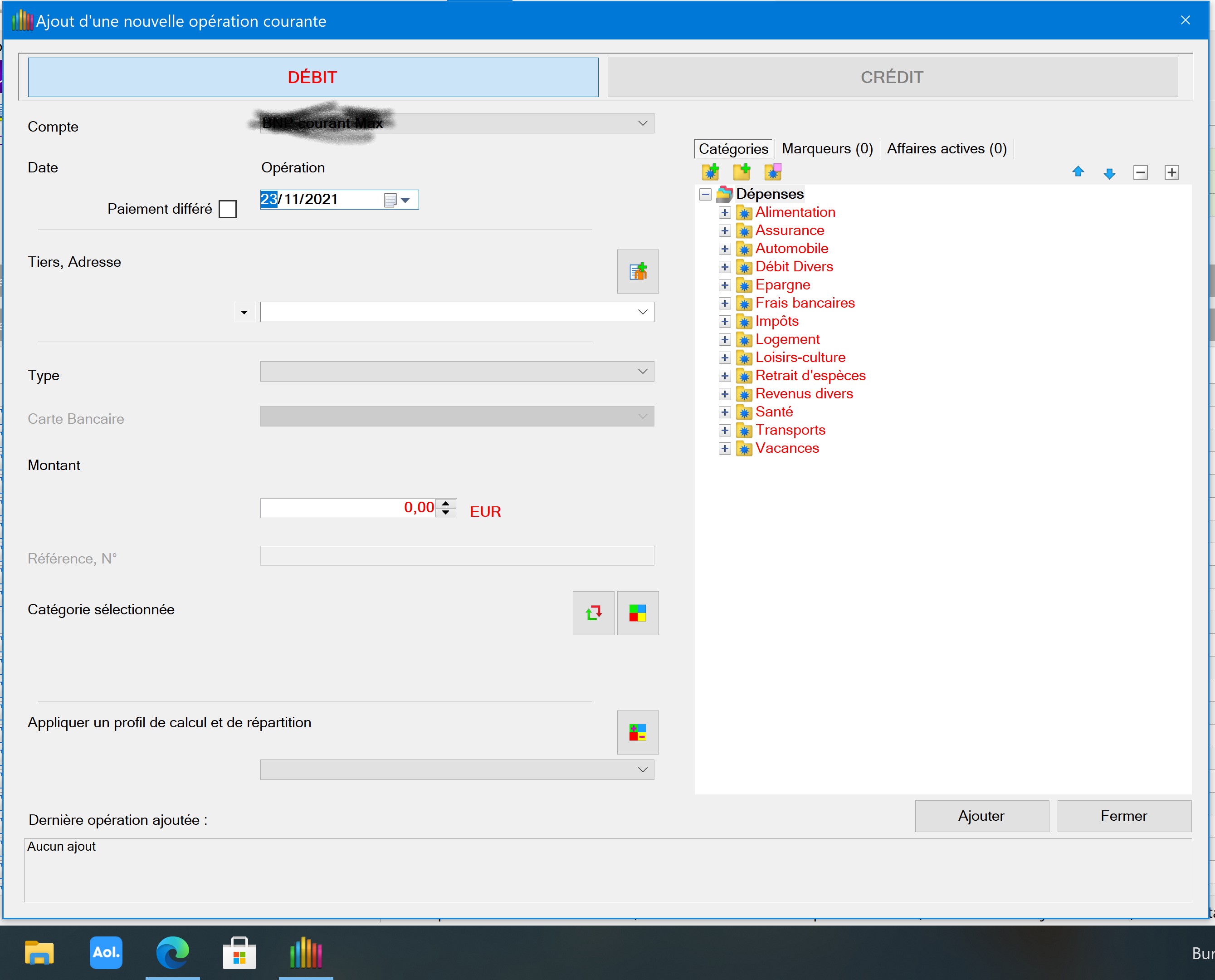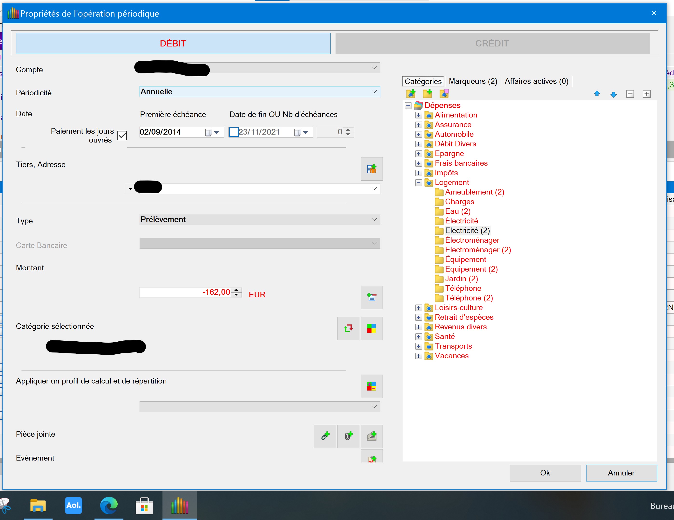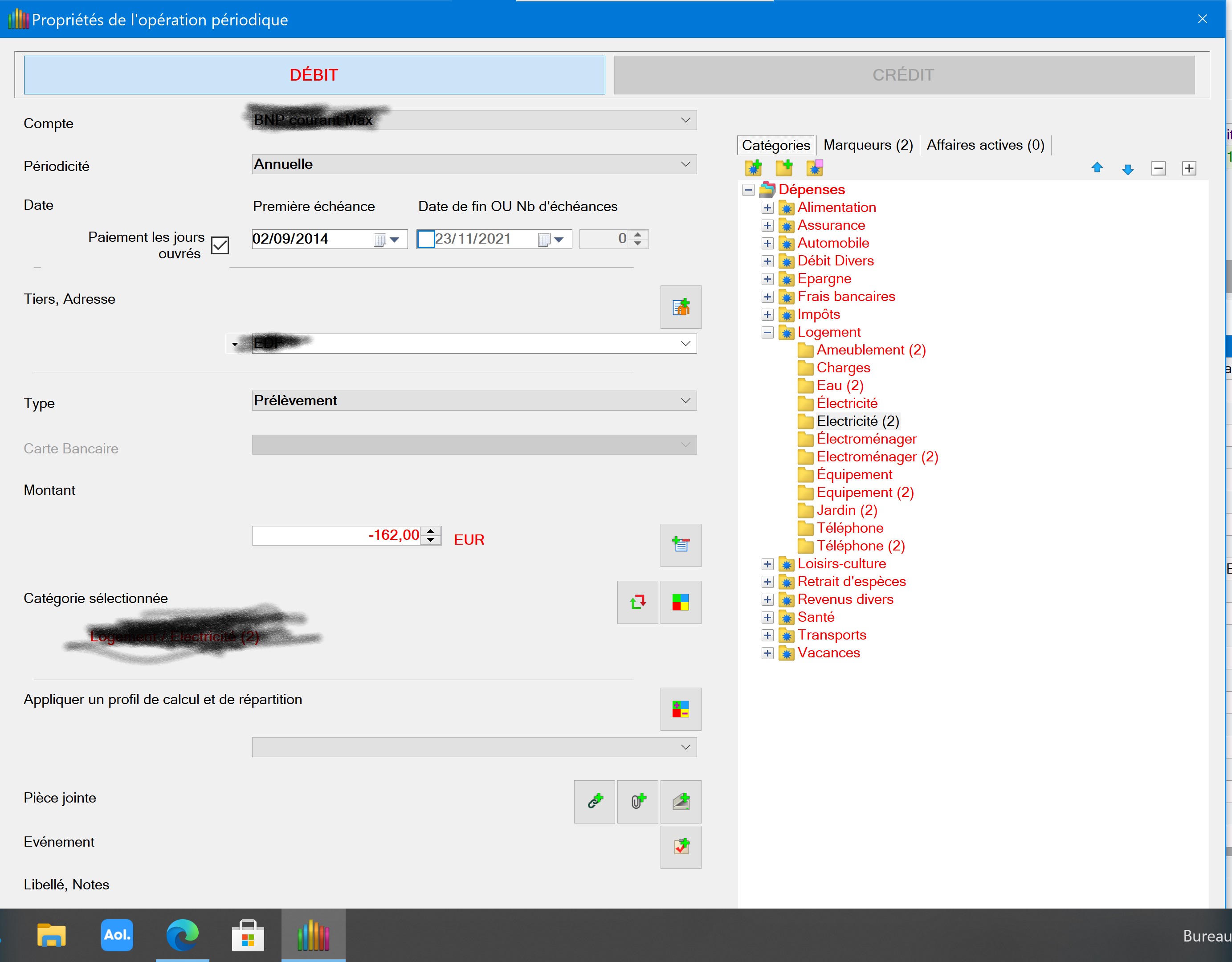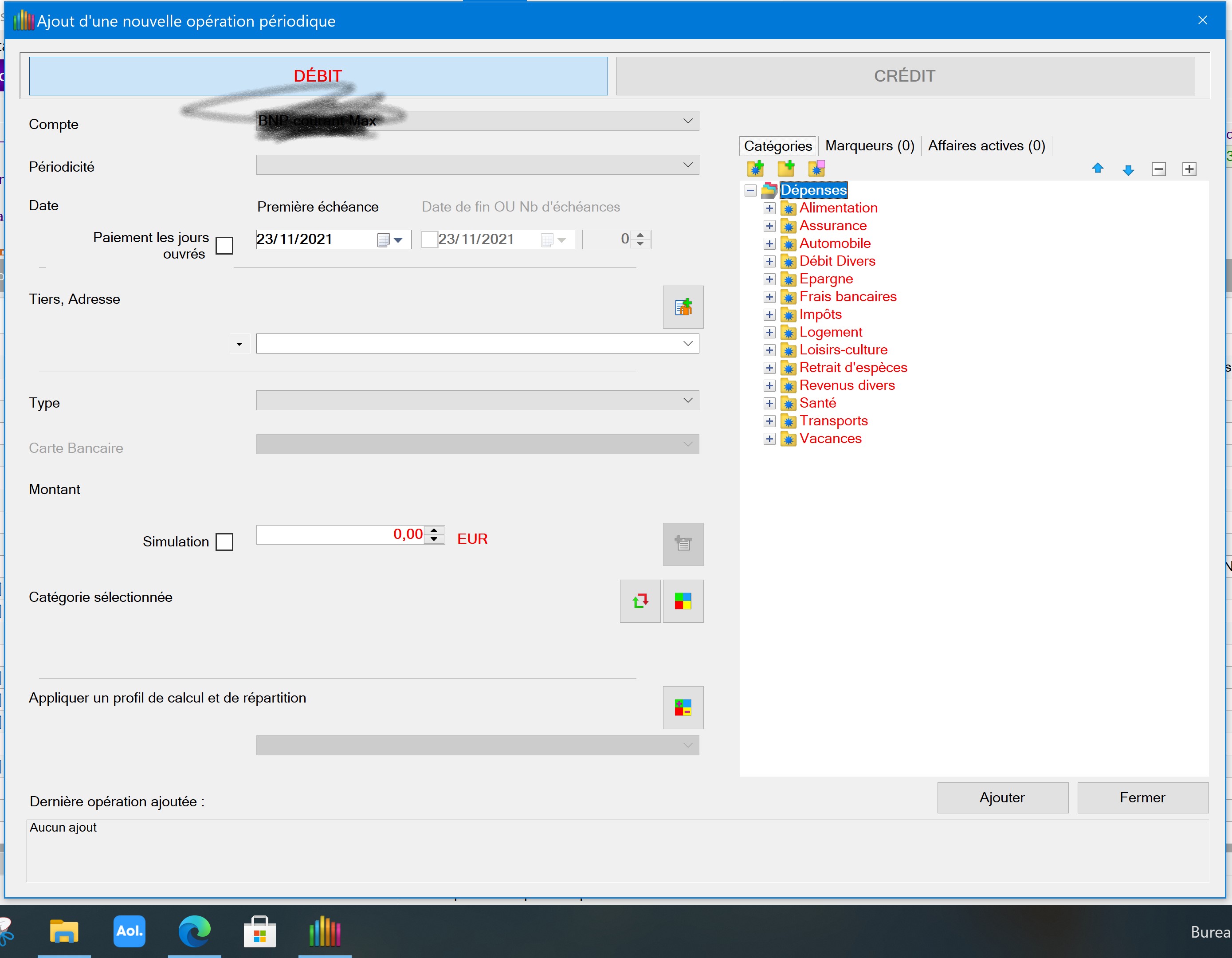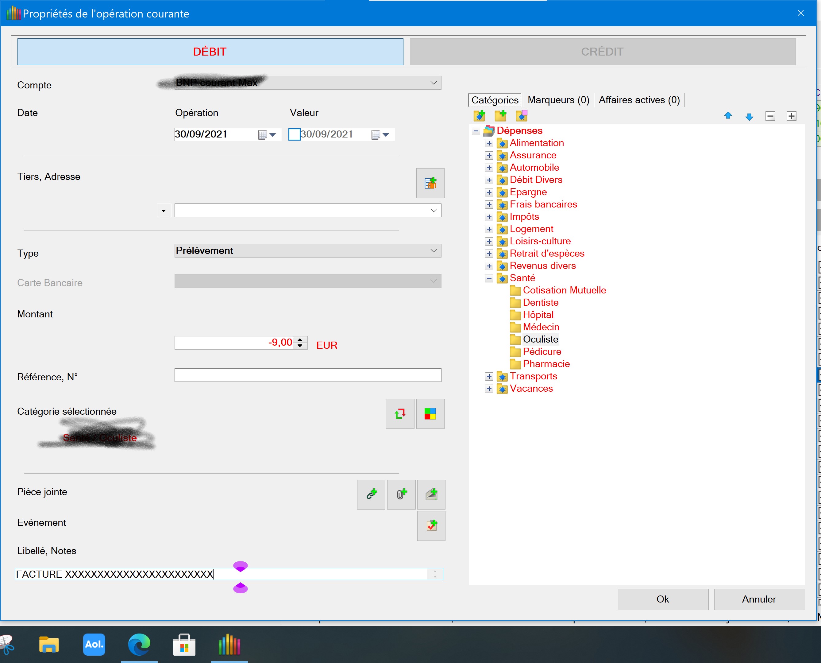 dans création ou modification d'une opération dans "opérations périodiques" il m'est impossible d'écrire dans la zone "libellé-notes". Pour faire apparaitre (un peu) cette zone il me faut augmenter la fenêtre vers le bas (et la réduire par le haut) mais je suis très vite limité dans cette agrandissement de fenêtre et je ne peux donc pas afficher totalement la zone "libellé" ...