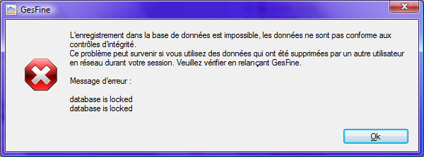 Après correction du montant, lors que je souhaite valider la mise à jour par "OK", le message suivant apparaît :