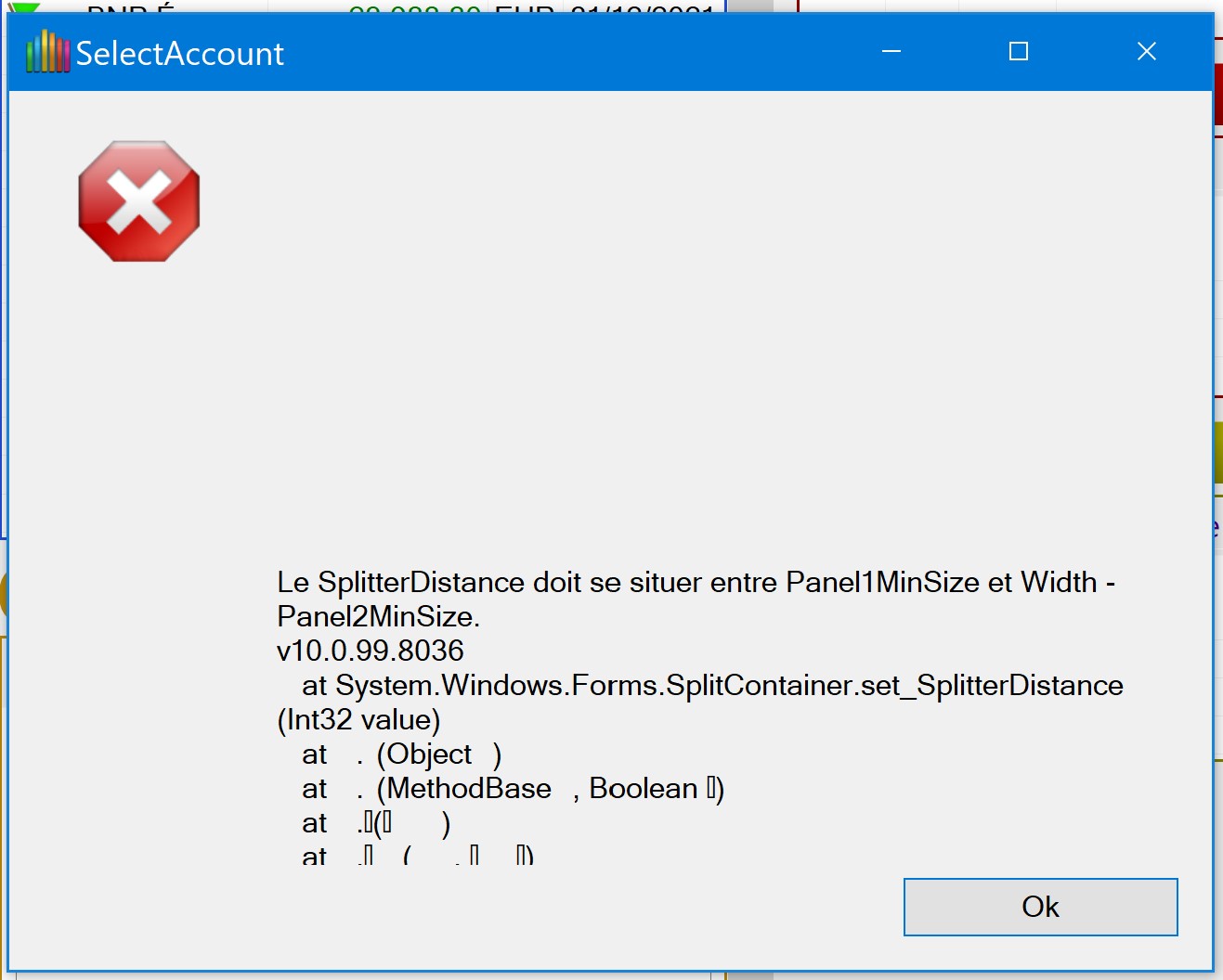 En cliquant sur OK j'obtiens un message d'erreur (voir PJ)