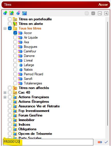Tu peux dans la zone de texte rechercher par le code ISIN, le titre ou une partie seulement du code ou du nom du titre.